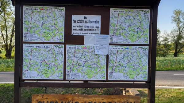 Sur le parking du trinquet, un panneau vous indiquera tous les circuits de Sainte-Colombe.